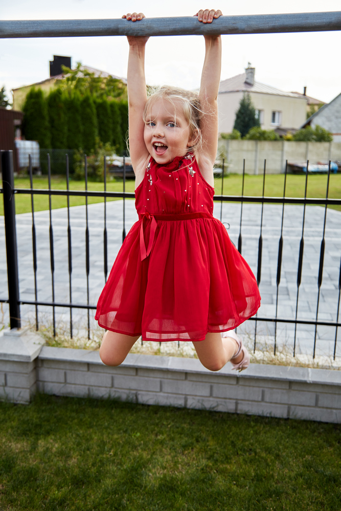 Sesja zdjęciowa z dziewczynami w czerwonych sukienkach, pełna pasji i energii, która podkreśla ich wyjątkową urodę oraz siłę młodości