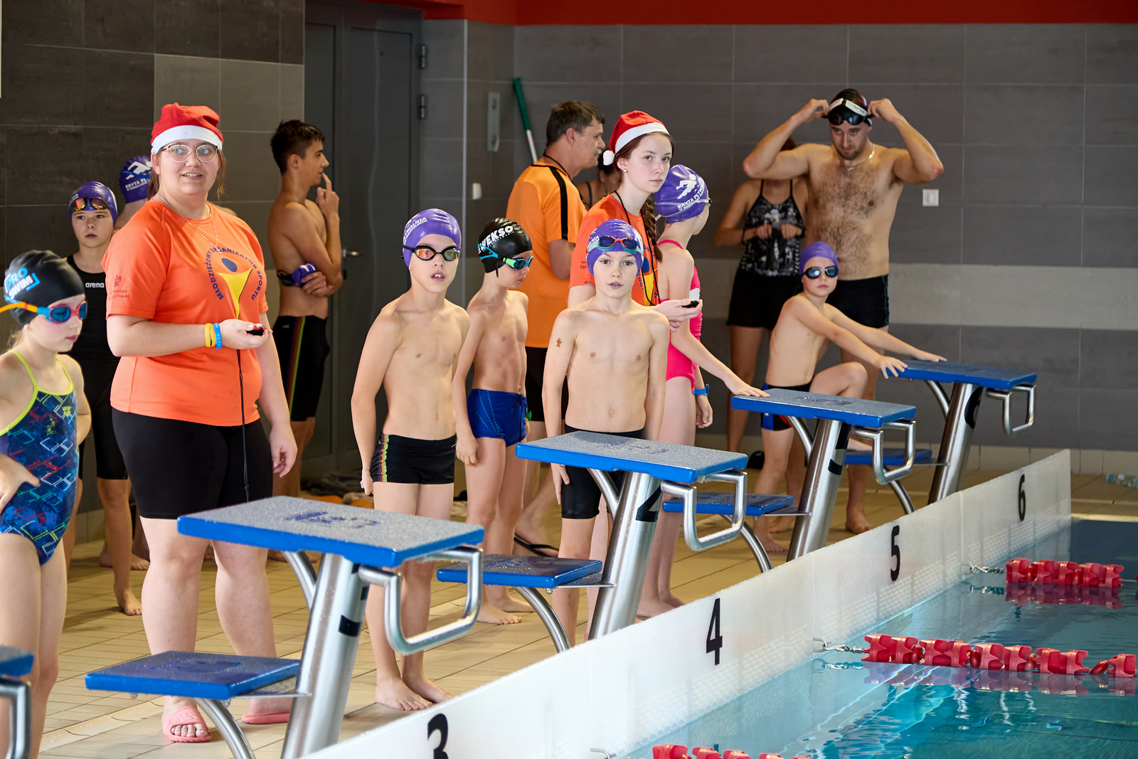 Zawody mikołajkowe 2024 - Sokołów Małopolski Wspaniałe chwile uchwycone podczas zawodów pływackich, pełne emocji, rywalizacji i radości z osiągnięć sportowych